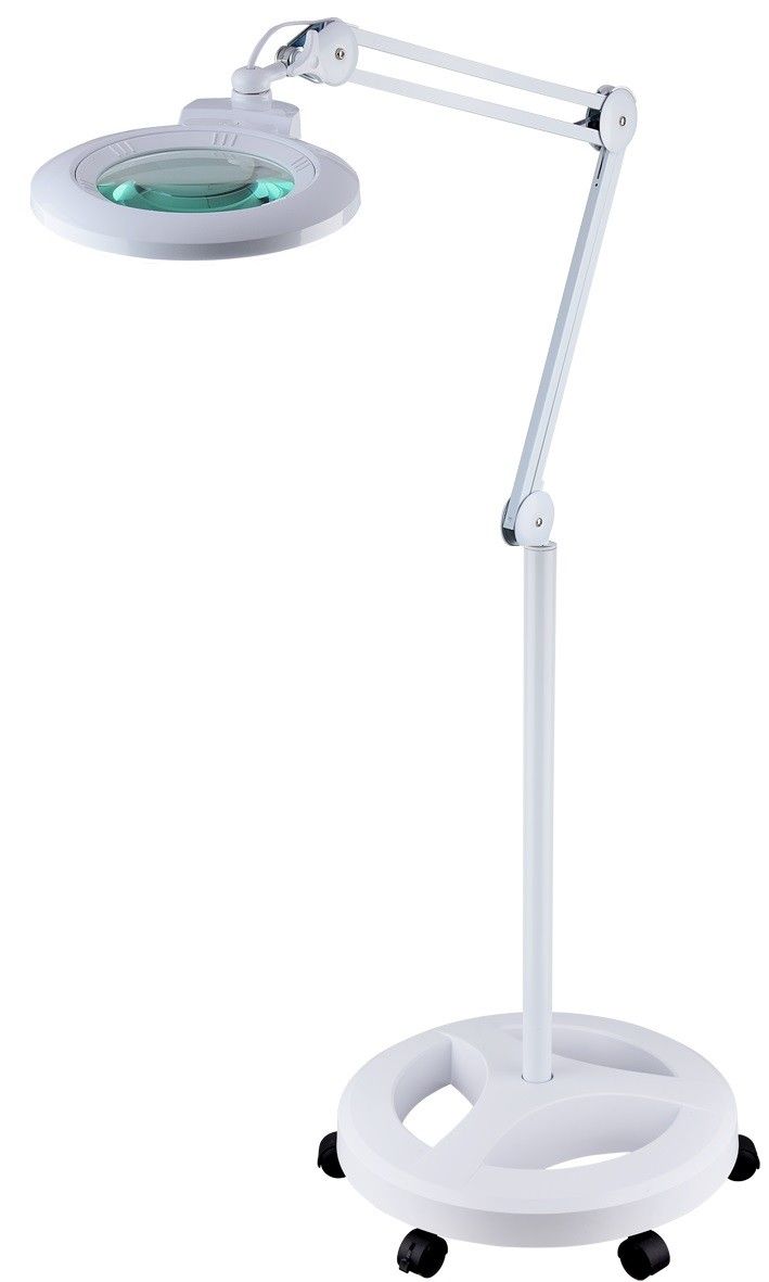 Compact round magnifying lamp stand all white