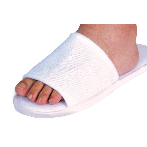Disposable Spa Slippers Open Toe White | 10 pack is backordered and will ship as soon as it is back in stock.