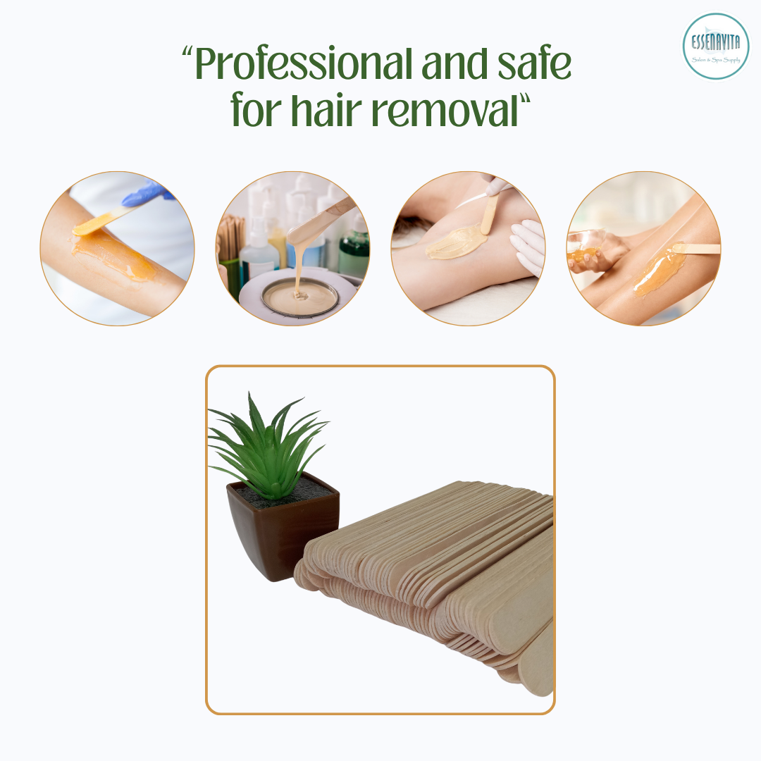 Essenavita brings you another high-quality product: professional wooden waxing sticks. Made from smooth, durable white birchwood, these sticks are perfect for body waxing, product mixing, and precise application. Ideal for salons, spas, or at-home use, they provide reliable performance for a variety of personal care tasks.